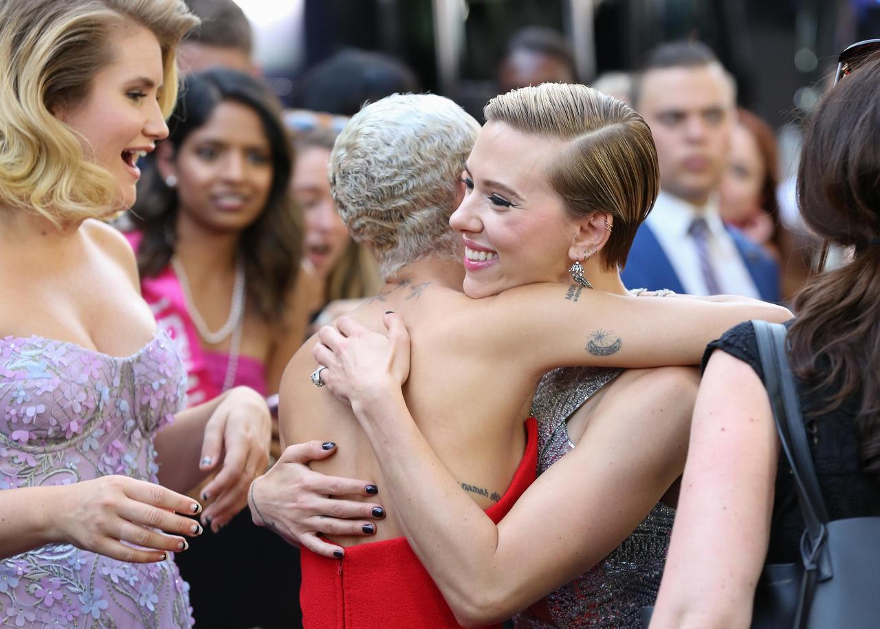 キラキラと輝くシルバーのホルタードレスでレッドカーペットならぬブラックカーペットに登場したスカーレットは、他のキャストたちと和気あいあいで始終楽しそうな様子。