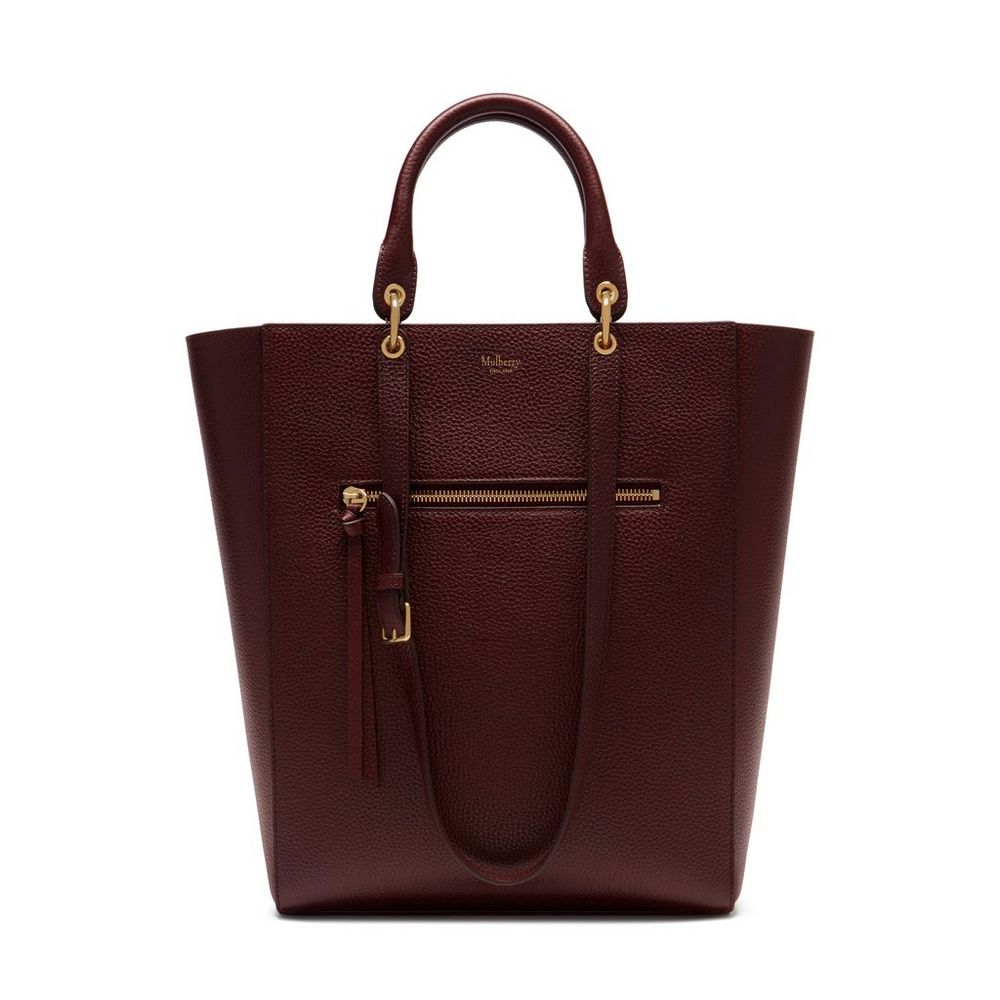 バッグは、ネイビーと相性の良いボルドーカラーのMulberryのトートバッグで色をプラス。ヘアはハーフバンでお茶目に仕上げて。