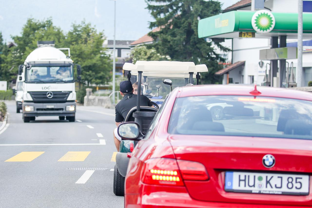 現在スイスにいるジャスティン・ビーバーは、ゴルフカートで庶民的なスーパーにむかった。