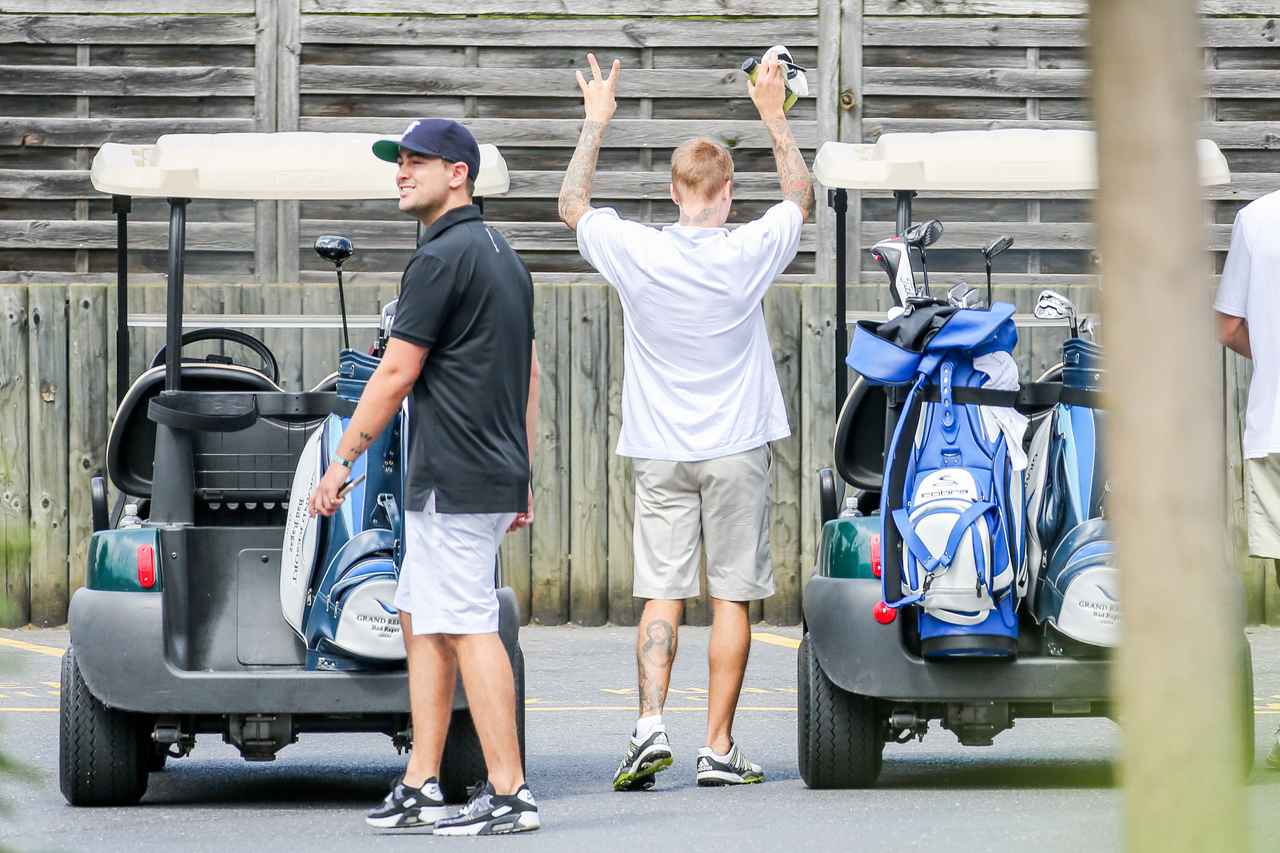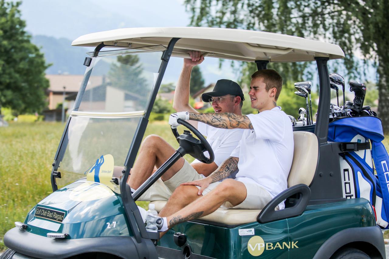 ジャスティン・ビーバーは、無邪気な笑顔でゴルフを楽しんだ後、ノドの渇きを潤すためにそのままゴルフカートに乗って公道を走りだした。