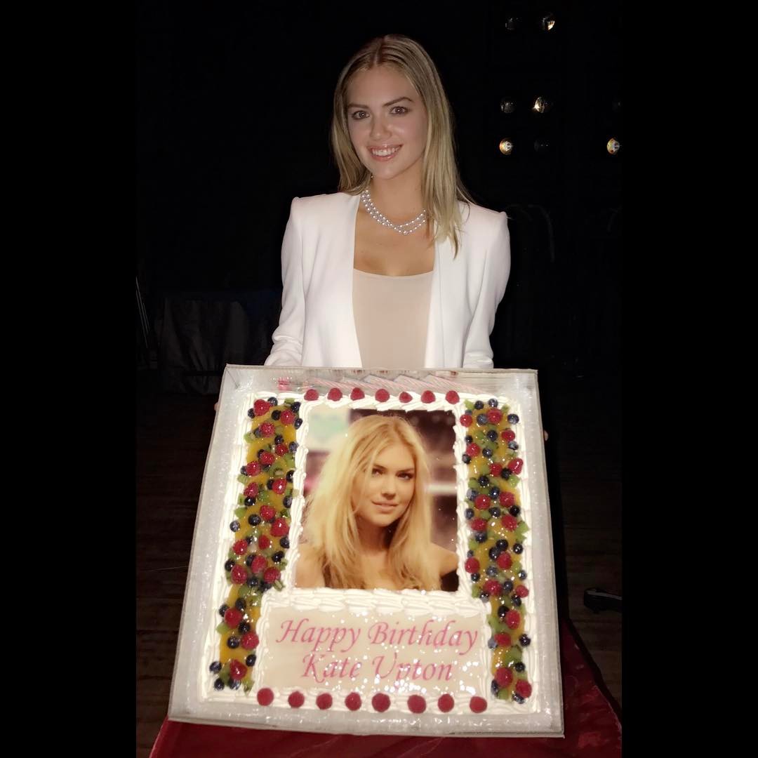 ケイトは、自身の顔が大きくプリントされたケーキにご満悦の様子で、インスタグラムに「ケーキ、ケーキ、ケーキ、ケーキ」とコメントを付けてアップした。