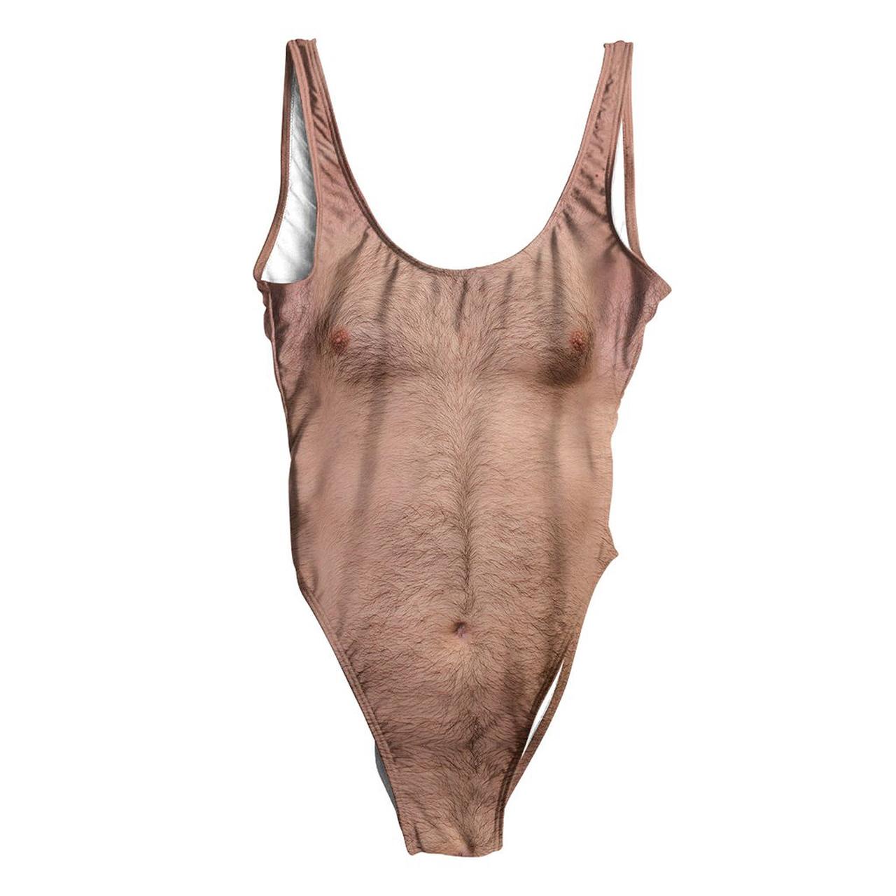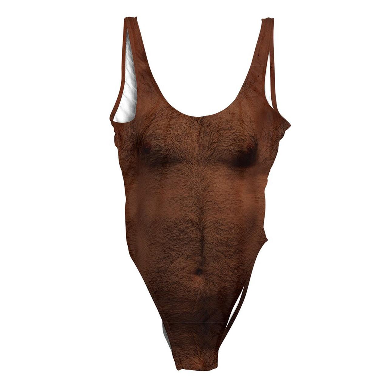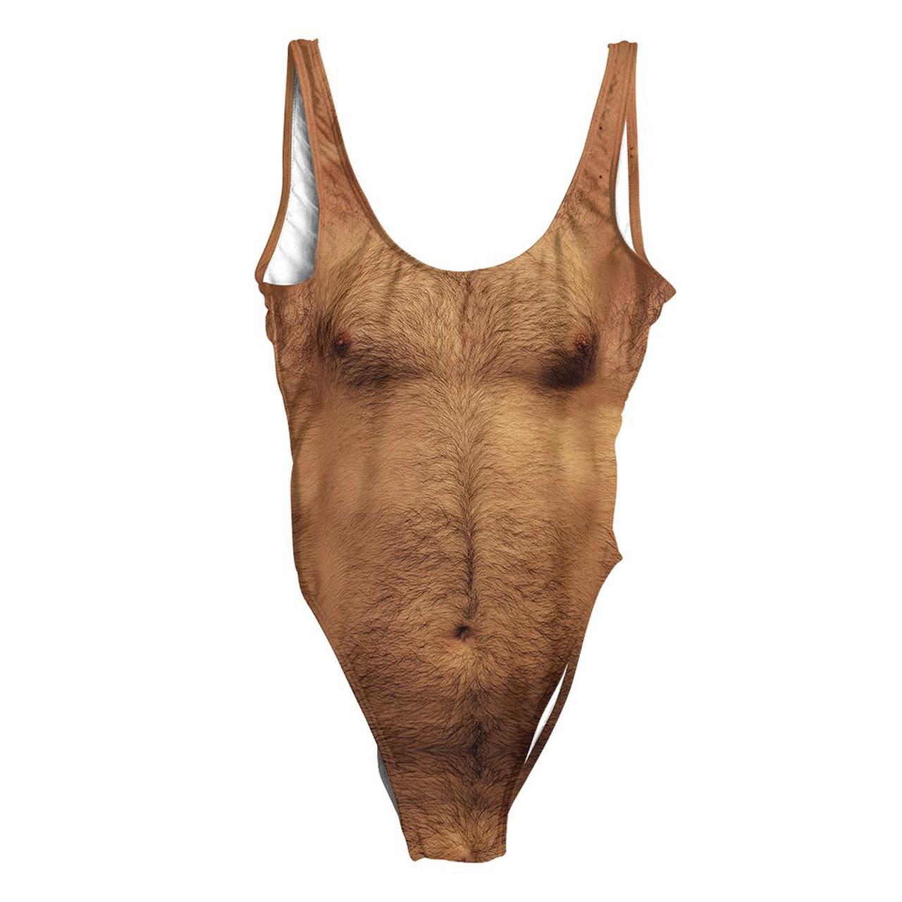 男性の胸毛や背中の毛がリアルにプリントされているこの水着。誰も手を伸ばさなそうだけれど、予想外にも人気を博しているという。