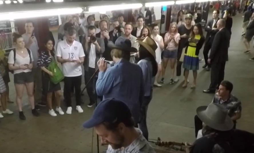 駅構内は、最初は人影がまばらだったものの、パフォーマンスが始まると次から次へと見物人が増え、ついには、マイリーの特徴的なハスキーボイスに「もしかして…?」と気がついた人々が、吸い寄せられるように集まって、まるでライブ会場かのような人だかりに。