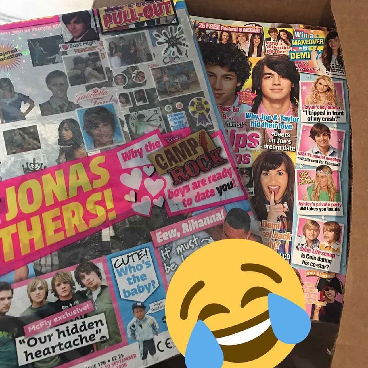 箱を開けると、そこにはジョナス・ブラザーズ時代の貴重なティーン雑誌の数々。