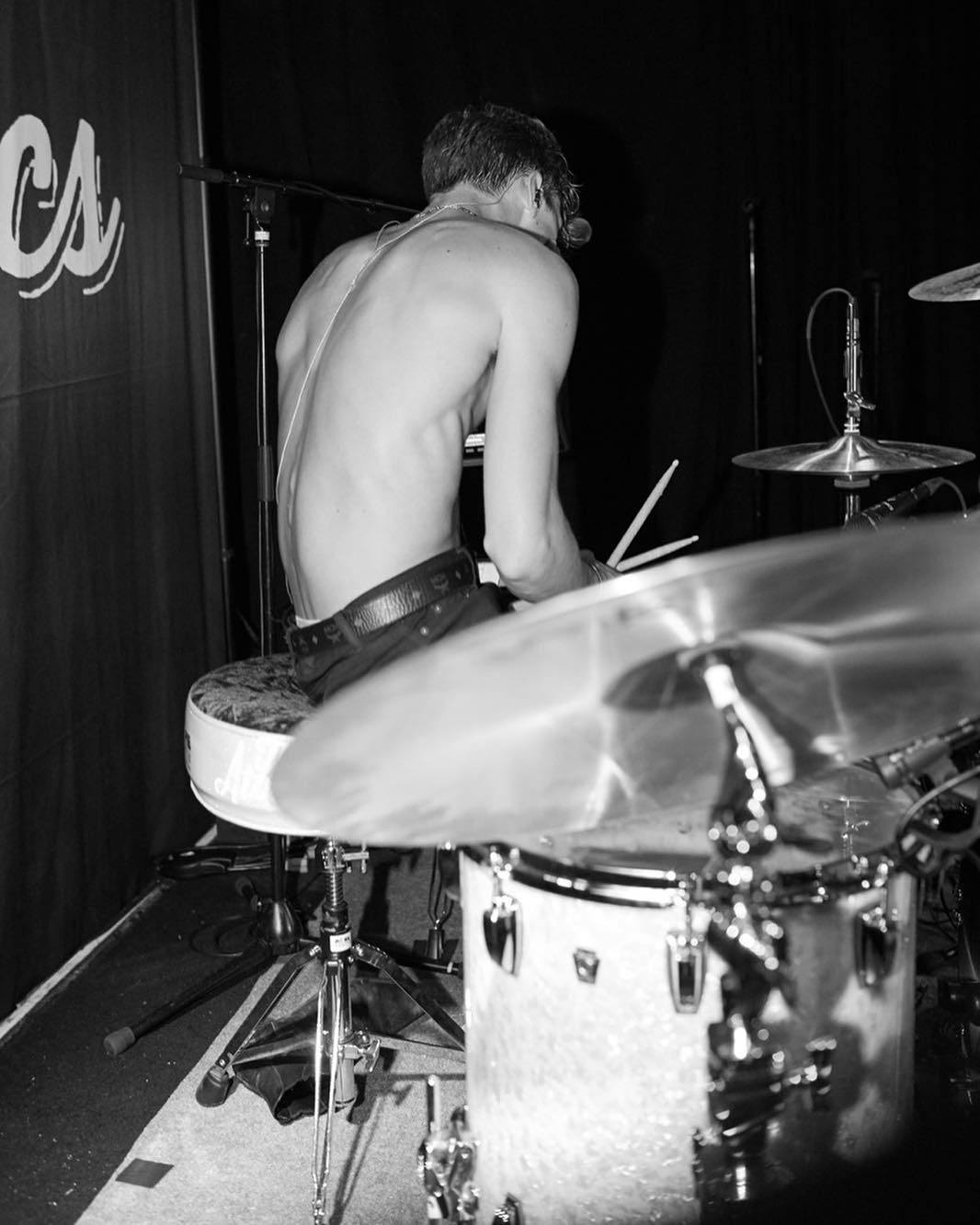 公開された動画では、激しくドラムを叩くラッキーの姿が。しかも上半身裸のせいもあってか、筋肉が動いている様子もはっきりとわかる。
