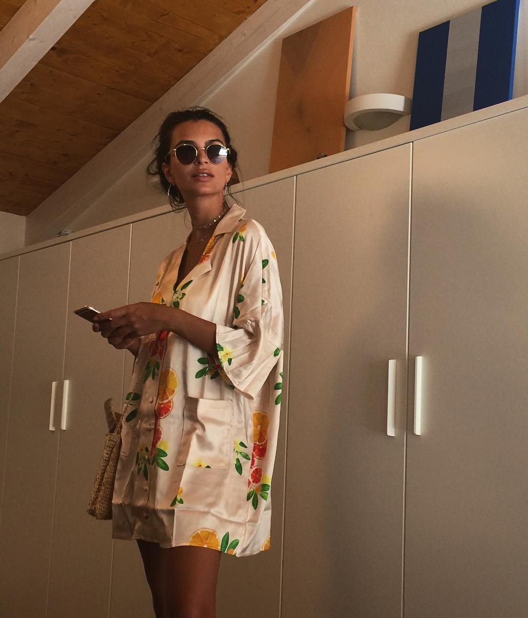 魅惑のボディで人気を集めているモデルのエミリー・ラタコウスキーが、下着姿で洗濯物を干している姿を発見。