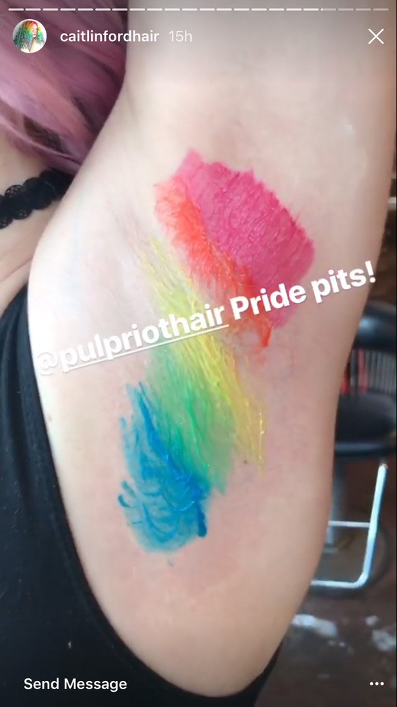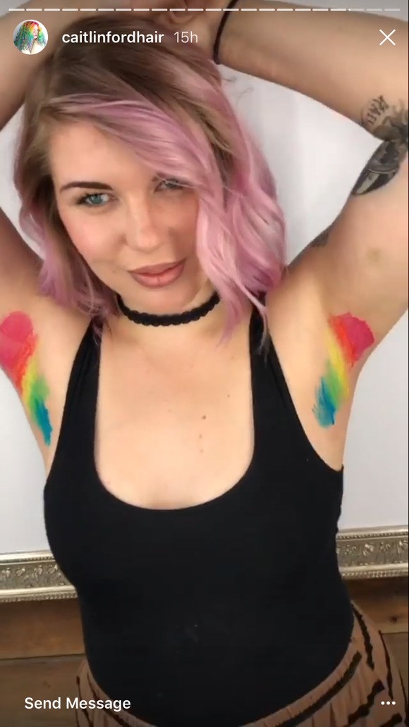 経験豊富なケイトリンも、さすがにわき毛を染めたことはなかったそう。けれど、綺麗なレインボーカラーに染めること成功し、その一部始終をインスタグラムストーリーに公開していた。