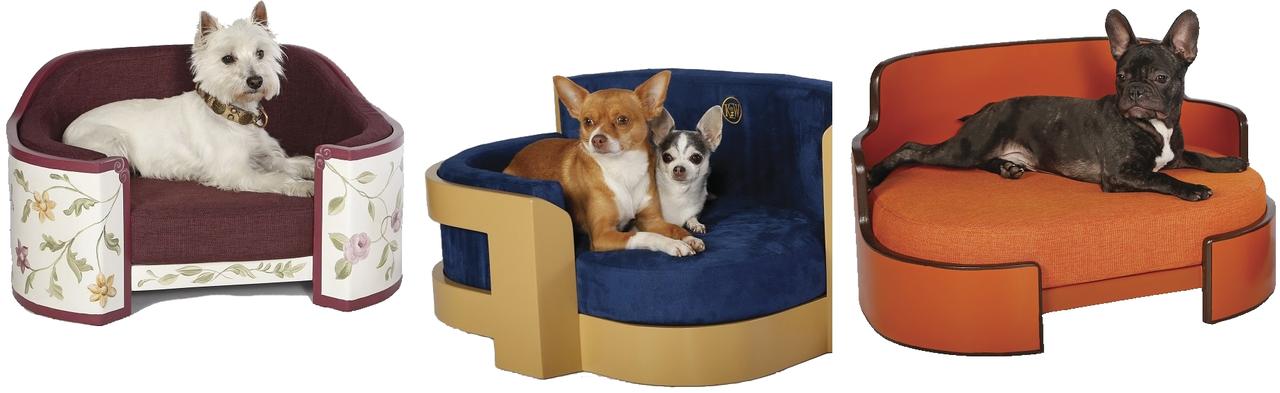 最高級の木材を用い、整形医学的な視点から考えぬかれたマットレスと衛生・通気性を保つためのアルミのフレーム、脱着・洗濯可能なカバーなど見た目の美しさと、最高の機能性を備えた芸術作品のようなペットインテリア。価格は12万円~35万円。