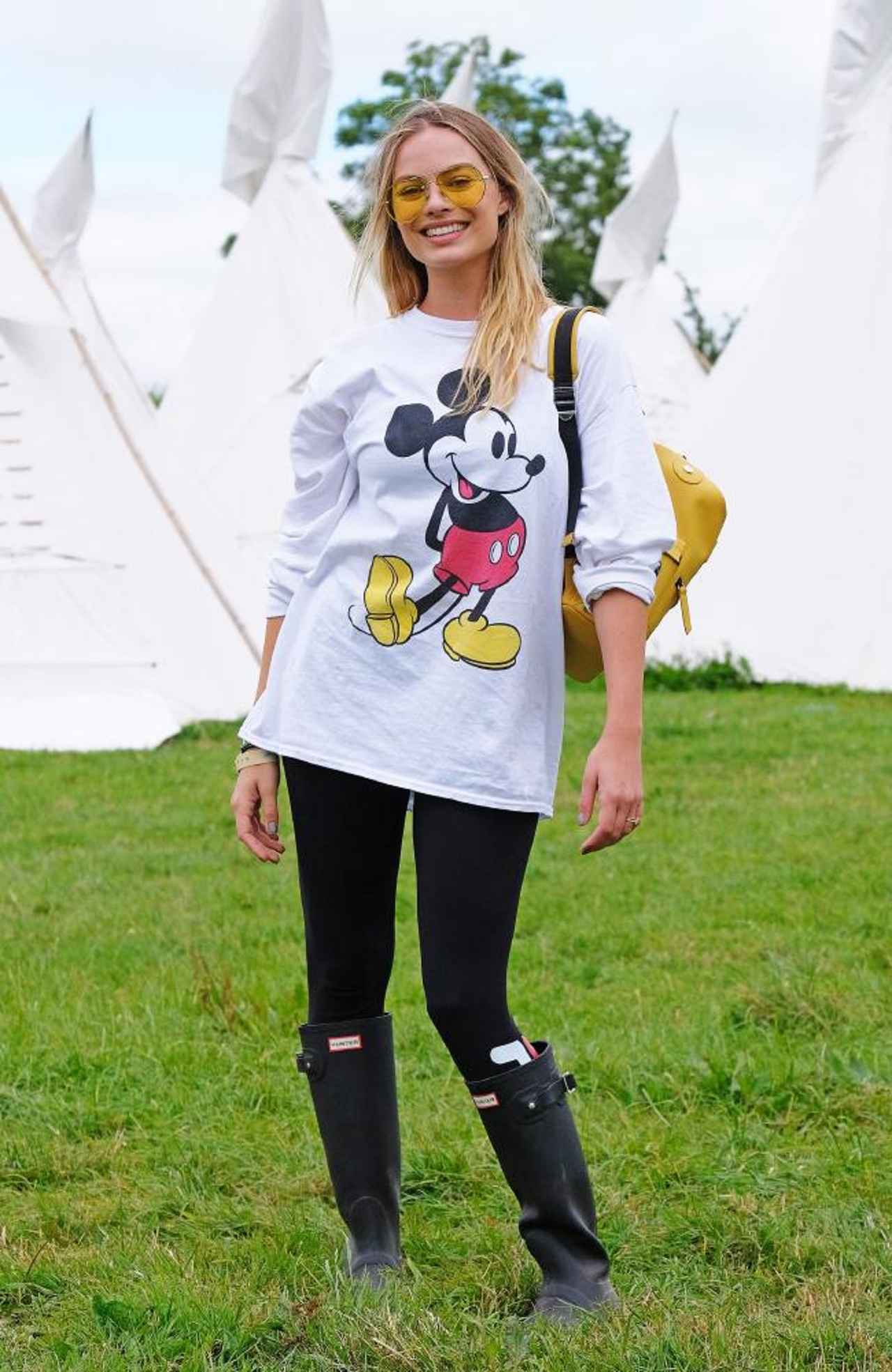 映画『スーサイド・スクワッド』の女優、マーゴットはスポーツブランドFILA(フィラ)とディズニーがコラボしたミッキープリントのロンTに、ボトムスは動きやすさを重視してレギンスをチョイス。足元はセレブの定番Hunter(ハンター)のウェリントンブーツで。サングラスとHunterのリュックの色をイエローでマッチ。