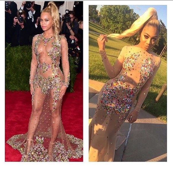 ビヨンセが2015年にファッションイベントのメット・ガラで着用した、全身シースルーでクリスタルがちりばめられたジバンシイのドレスに一目ぼれしたのは、セント・ルイス在住のインディア・ロス。「このドレスをどうしても着たい!」と思ったインディアは、地元のデザイナーにお願いして作ってもらったそう。