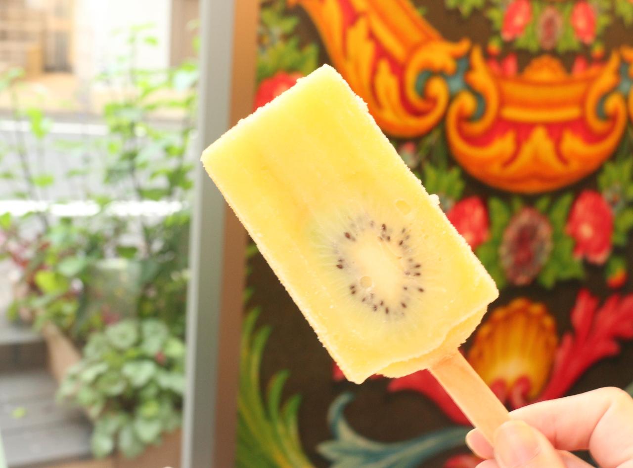 そして、オレンジアイスに輪切りのキウイを贅沢に入れたフレッシュな味わいの「オレンジキウイ」、 ピンクグレープフルーツアイスにフランボワーズ果肉や花びらを乗せた「フランボワーズパンプルムース」がセットになっている。
