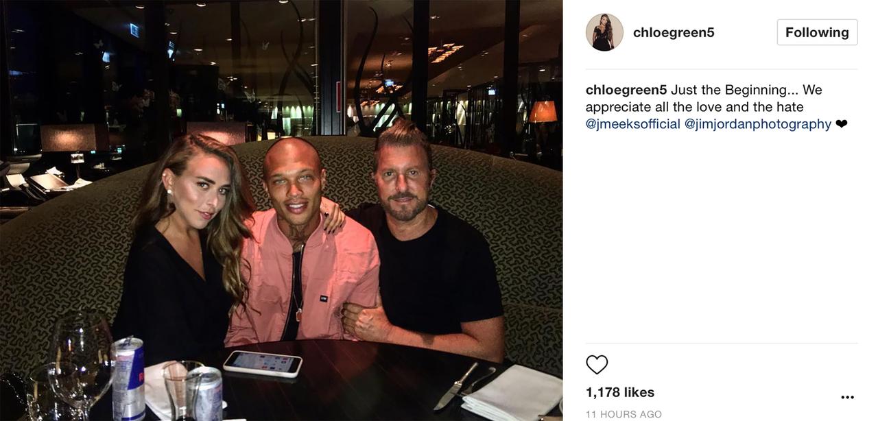 クロエが公開した、ジェレミーとジェレミーのマネージャーの男性との3ショット。©Chloe Green
