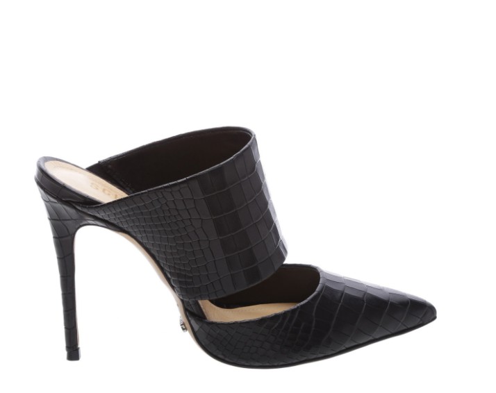 シャープな形のサングラスでモードな気分を盛り上げ、首元には赤の花柄スカーフを巻いて華やかさをプラス。
