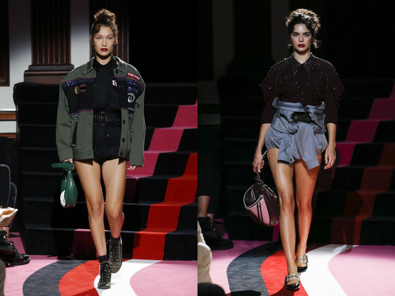 この日は、miu miuのファッションショーへ出演のため、親友同士のベラ・ハディッドとケンダル・ジェンナーは、一緒に会場へ。2人そろってセットアップスタイルで登場した。