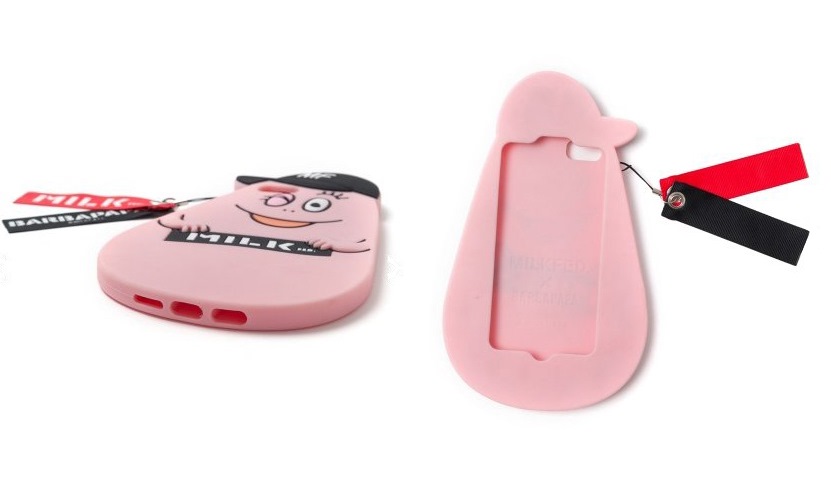 今回販売されるiPhoneケースは、PLAZAで売り上げ上位にランクインしているシリコン製のダイカットタイプをベースに、バーバパパとバーバモジャのそれぞれがMILKFED.のロゴキャップをかぶったオリジナルデザイン。ロゴが描かれたチャーム付きで、コラボ感たっぷり。