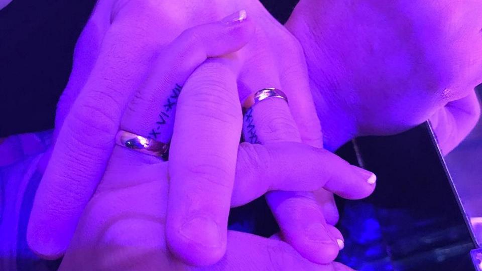 そんな2人は、左薬指にあるおそろいのタトゥーを入れた。