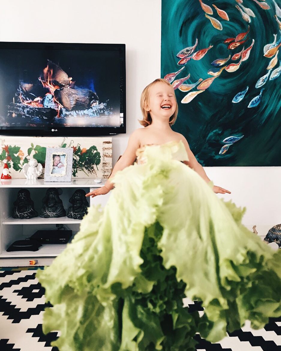 食べ物で遊んではダメだと昔から言われているが、フルーツや野菜をドレスとして楽しむ少女が現れている。
