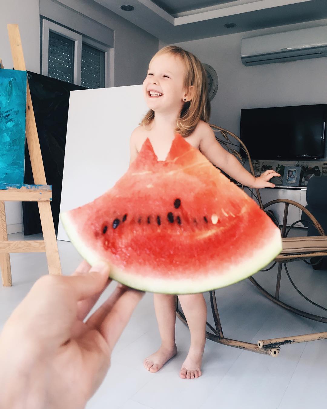母親のアリヤがドレスとなるフルーツや花などを持ち、ステファニーちゃんが、それに合わせポーズをとっていくというクリエイティヴな作品は、インスタグラムにその様子が投稿されており、人気を博している。