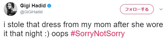 例えば、モデルのジジ・ハディッドは、母親のドレスをこっそり拝借した時に「ソーリー・ノット・ソーリー」と使用。