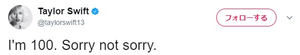 訳:「私、100歳だと思う。ソーリー・ノット・ソーリー」