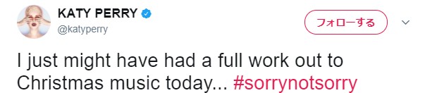 訳:「今日、クリスマス音楽をかけてフルワークアウトをしちゃったかも。ソーリー・ノット・ソーリー」