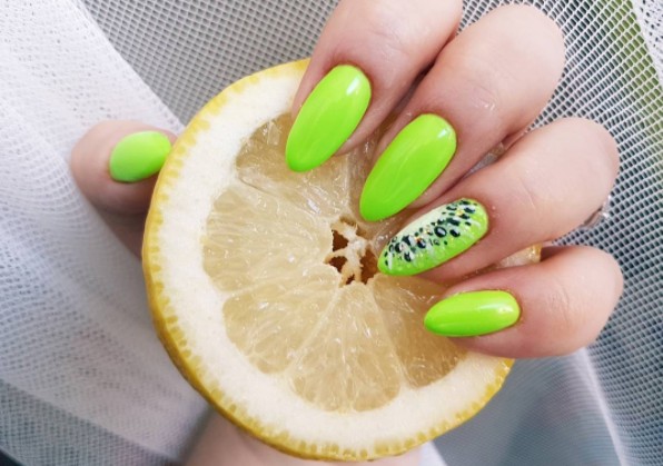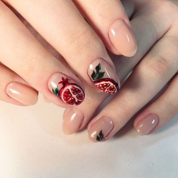 すべての指にするのは抵抗があるという人は、1、2本だけにフルーツを描くと丁度いいアクセントに。