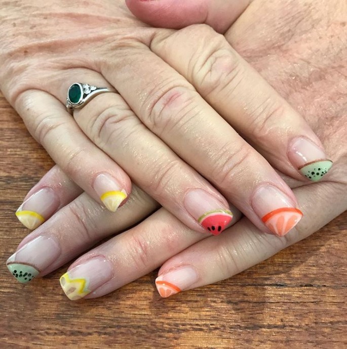 カラフルでポップなフルーツネイルは、手先から夏らしい季節感を演出することができる。