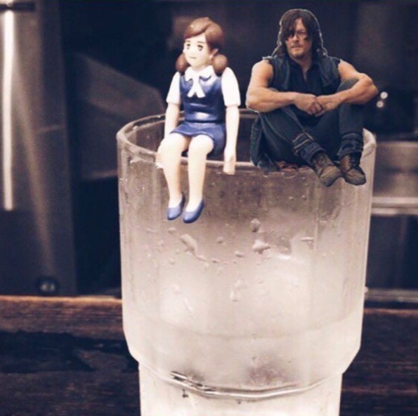 そんなノーマンが、日本発の新感覚フィギュアであるコップのフチ子とダリルの格好をして、コップに一緒に座っている写真をインスタグラムに「おやすみ」のコメントと一緒にアップした。