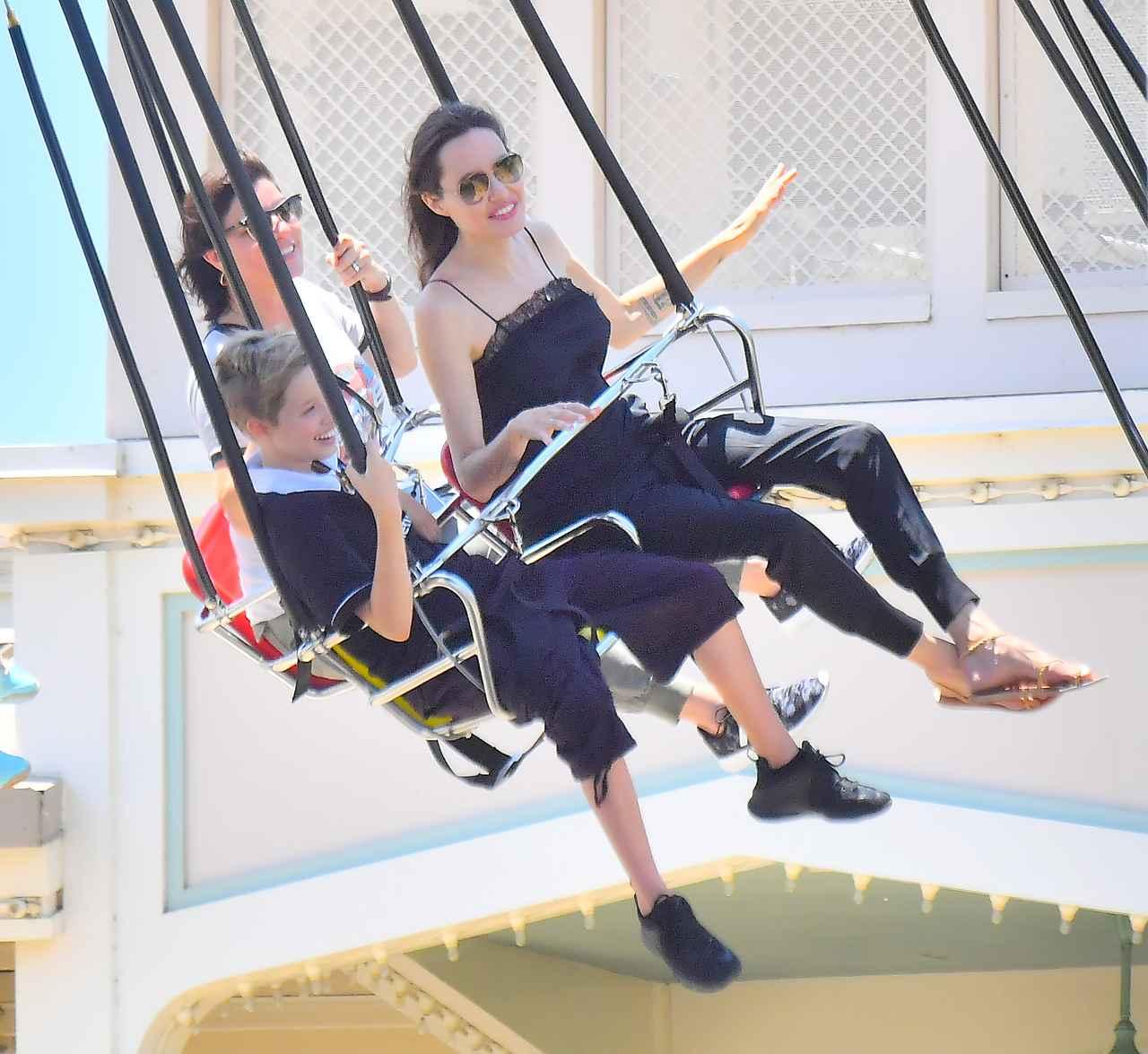 カジュアルな服装でディズニーランドを訪れたアンジェリーナは、空中ブランコに乗るなど、子供たちと一緒に大はしゃぎ。