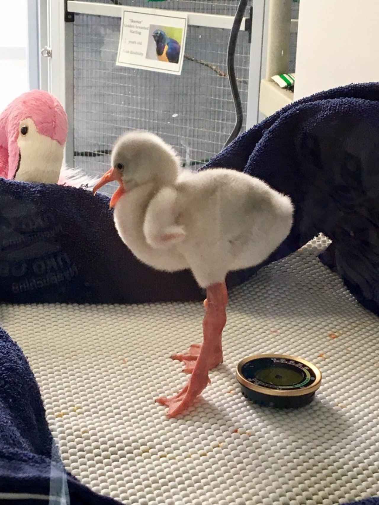 ナショナル・エヴィアリーでは、フラミンゴの赤ちゃんが公開される時間帯があるため、見ることができ、白の産毛にくちばしと足だけピンクになっている姿が可愛いと話題に。