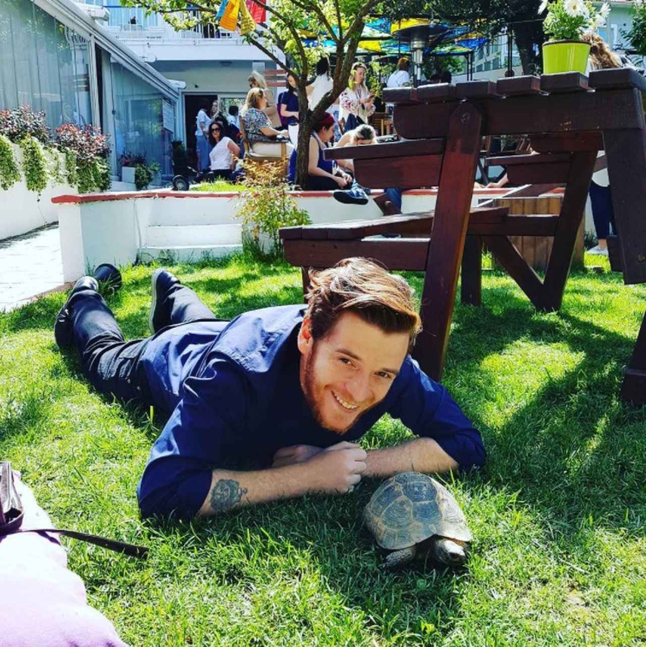 カメとのツーショットが似合うほのぼの系イケメン。©Metin Hara