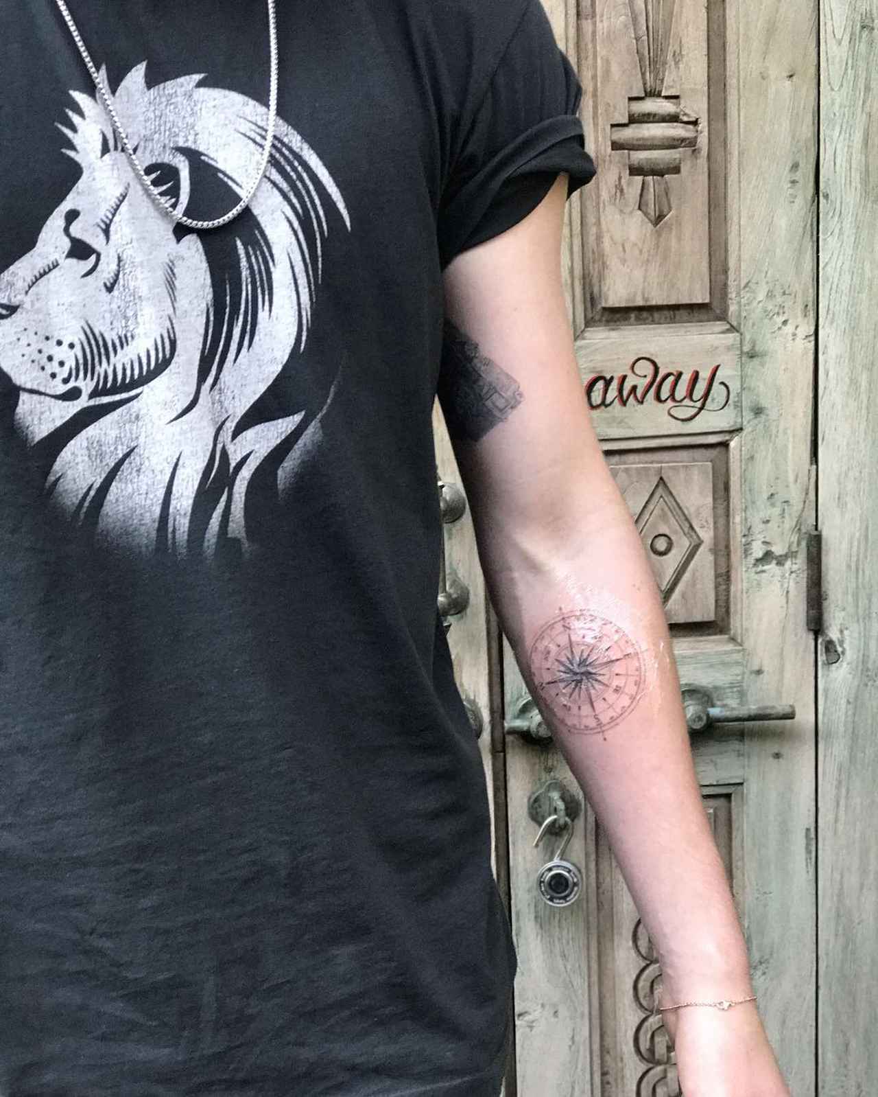 そのタトゥーは、右腕に刻まれた羅針盤と、左手甲の刻まれたワシ。