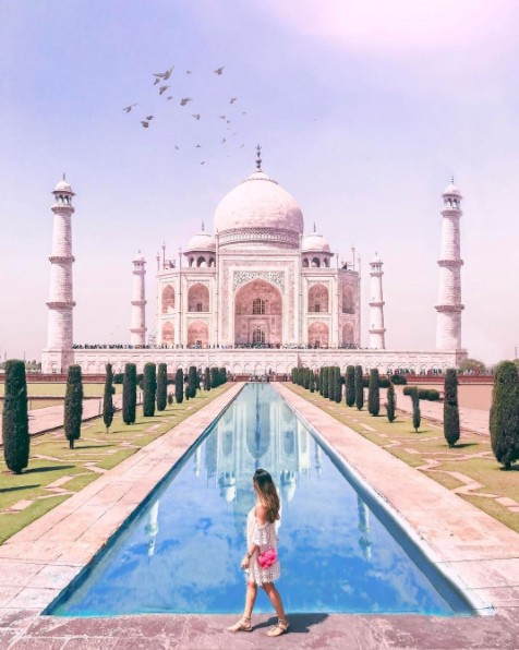 ほかには、アメリアがインドにある世界遺産、タージ・マハルを訪れた時の写真。一見普通のタージ・マハルでの綺麗な写真だけれど、明らかに合成を疑わざるをえない決定的な点が。
