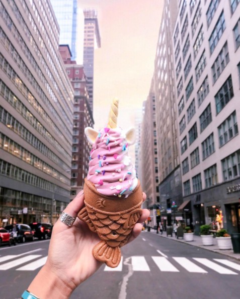 アメリアが人気のたい焼きアイスをニューヨークの街並みをバックに撮ったこの写真については、あるニューヨーカーが「ちょっと待って、こんなことあり得るの? このたい焼きアイスのお店からこの場所ってかなり遠いんだけど」と、お店からこの場所まで時間がかかるのにまったくアイスが溶けていないことを不自然に思いコメントしている。