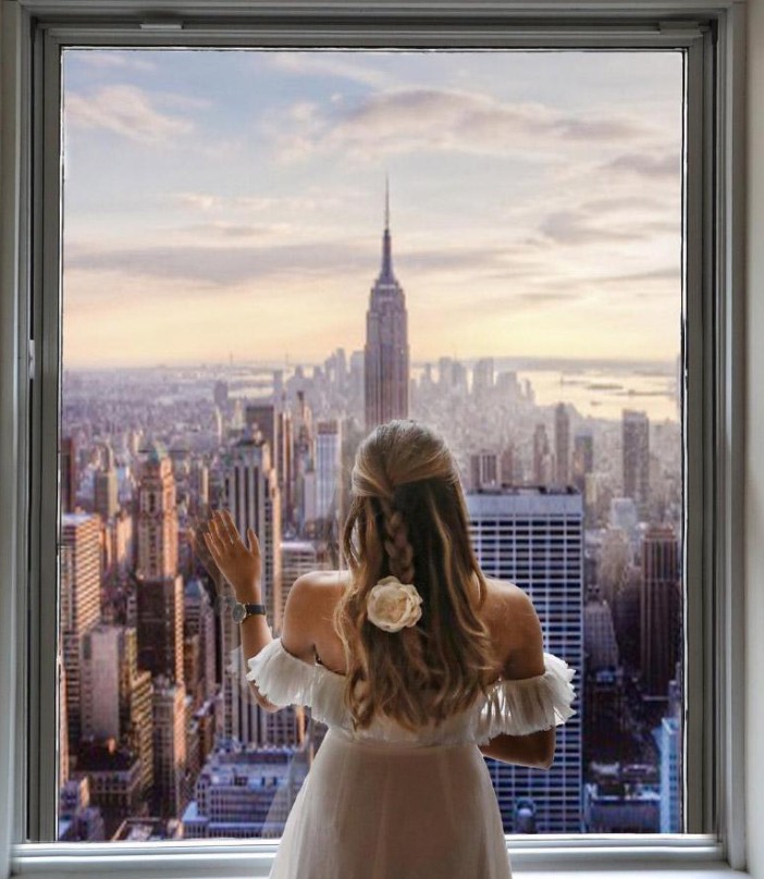 その写真とは、アメリアがニューヨーク・マンハッタンにあるロックフェラー・センターからマンハッタンの街並みを眺めるアメリアの後ろ姿を写した写真。けれどこの写真には、写るべきあるものが写っていない。