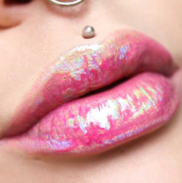 前回フロントロウでも紹介したホログラムリップは、まだまだ勢いが止まらないよう。好きなリップカラーの上にホログラムをのせるだけで、一気にフューチャリスティックな印象に。
