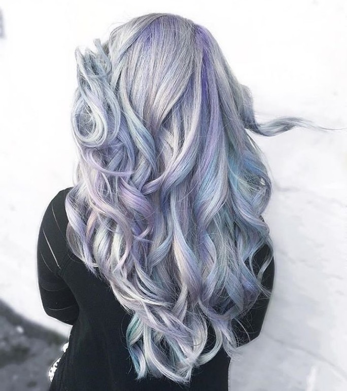 奇抜なカラーがたくさんトレンド入りしているヘア界にもホログラムの波が。真っ白やグレーともいえるようなカラーに、紫や青などを加えた絶妙なホログラムカラーに。