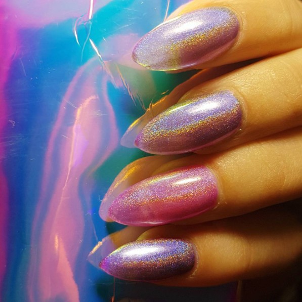 ネイル界でも少し前からホログラムは盛り上がっており、存在感を放つホログラムネイルは単色でも十分かわいく、海外の若い女子たちが取り入れている。
