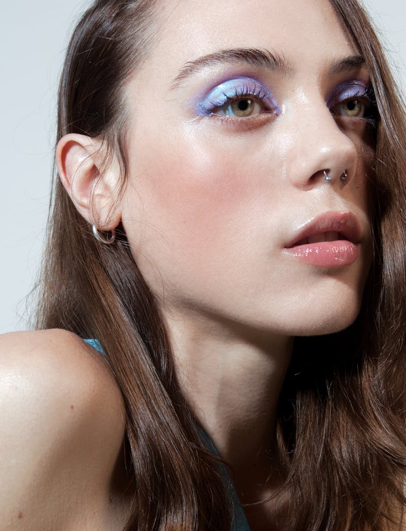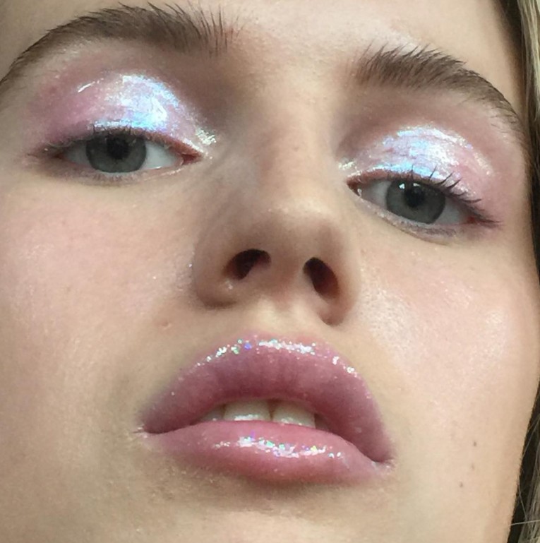 ハイライトと一緒にアイシャドウでもホログラムカラーを使用する人も。アイホール全体にまんべんなく塗って、大胆かつきらめきのある目元に。
