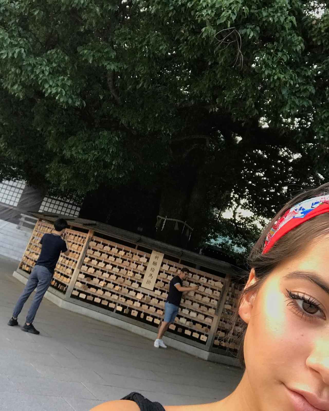 興奮冷めやらぬイザベラがこの日向かったのは、明治神宮。来日すると多くのセレブたちが訪れる明治神宮でイザベラは、数々の絵馬をバックに撮影。