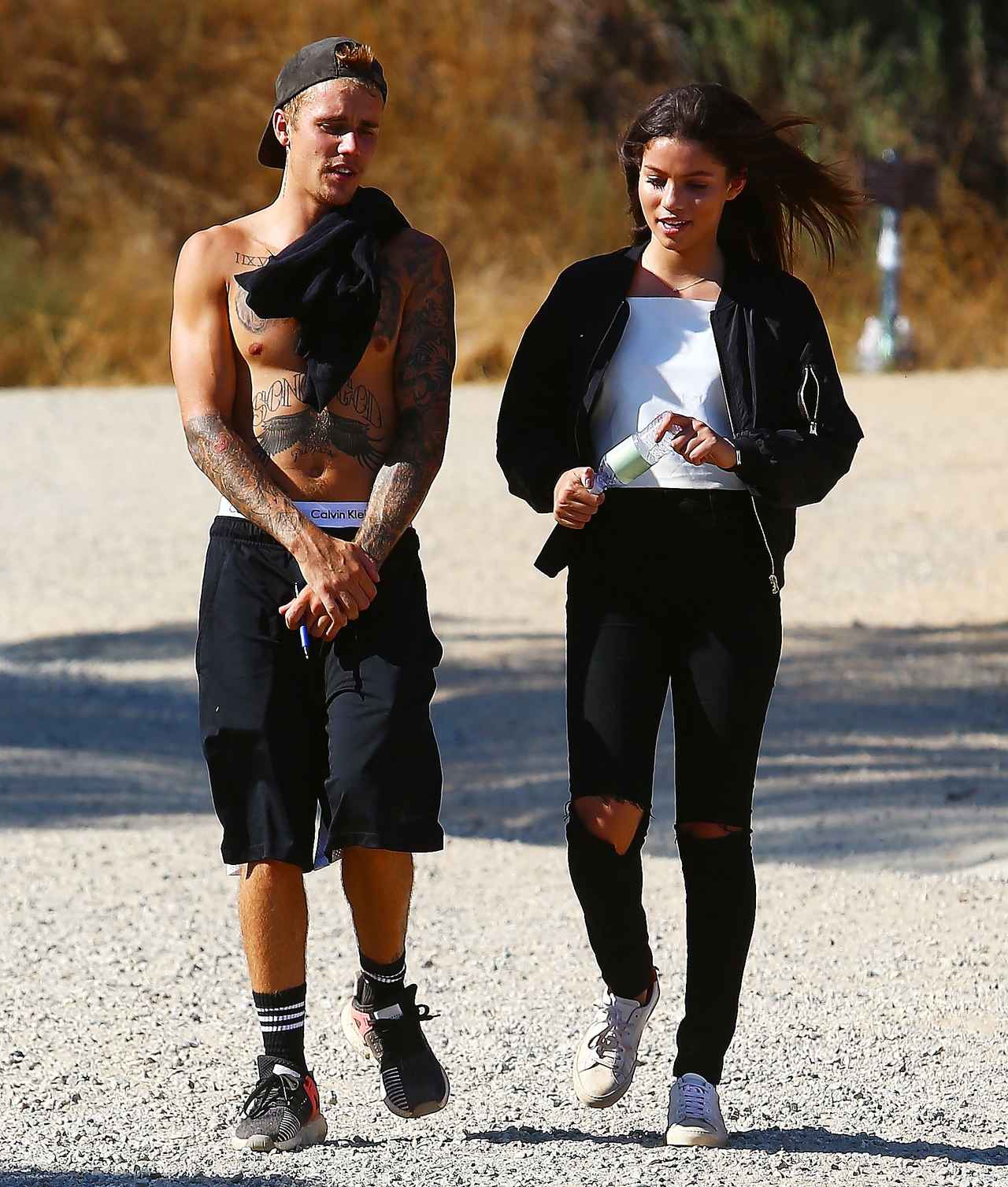 Pictured: Justin Bieber spotted shirtless while on a hike with Audreyana Michelle in LA, CA Ref: SPL1543800 230717