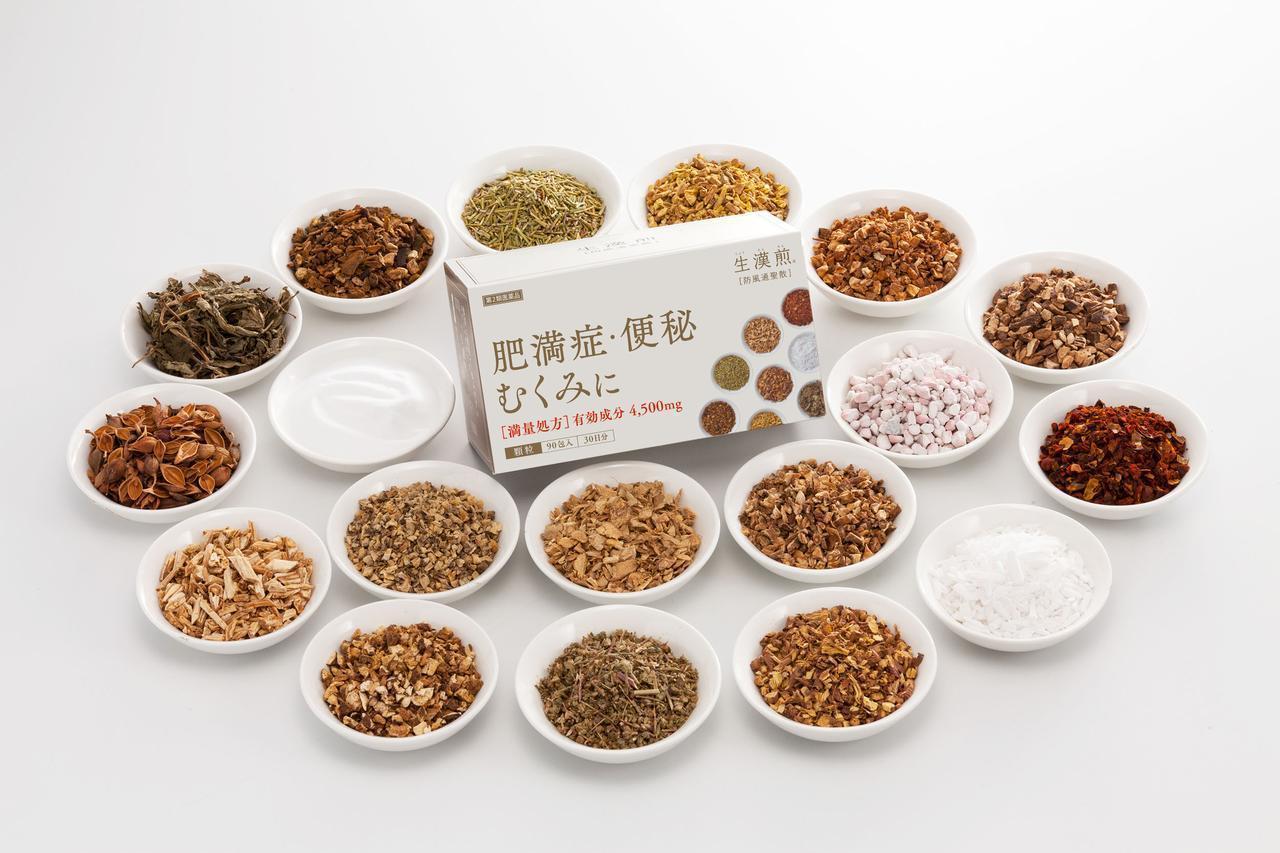 漢方処方より得られたエキスを全配合している(満量処方)「生漢煎 防風通聖散」は、18種の生薬が汗・利尿・便通作用を発揮し、肥満症、便秘、むくみを改善してくれる。