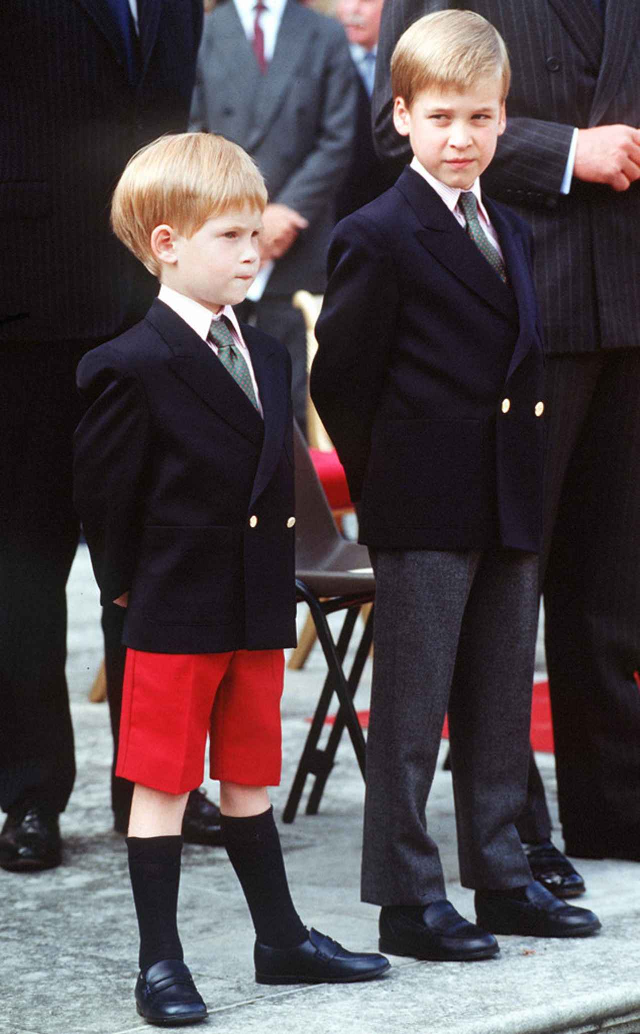 1989年、当時7歳のウィリアム王子と5歳のヘンリー王子。ウィリアム王子はショートパンツを卒業。