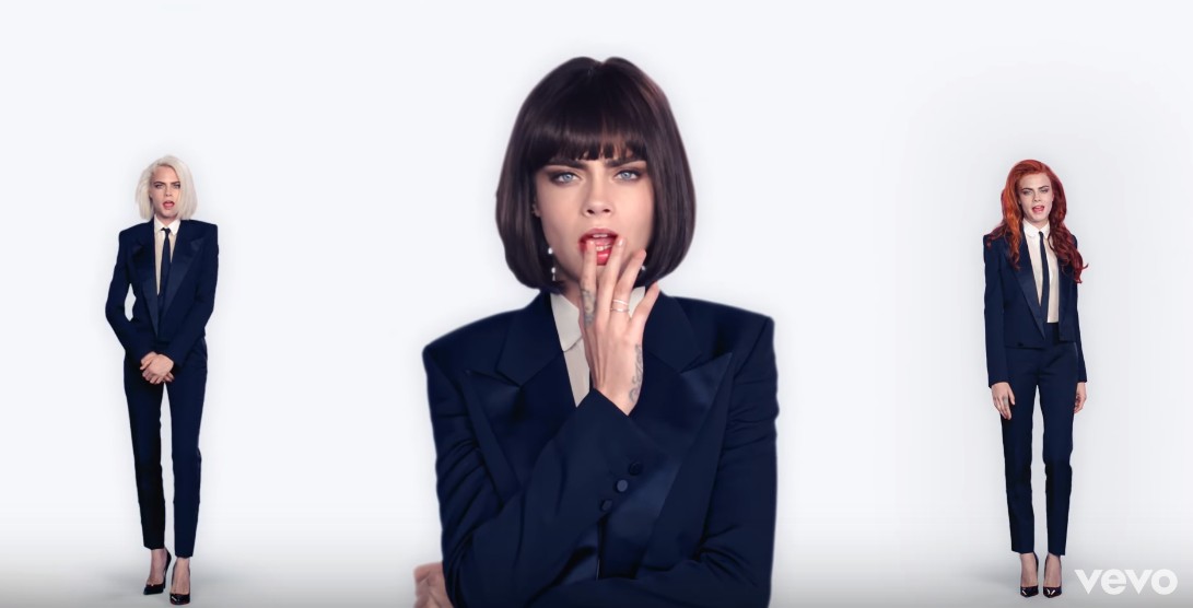映画と同じく巨匠リュック・ベッソン監督が総指揮を務め、劇中のシーンも織り交ぜたフューチャリスティックな同MVで、カーラはシンプルなメンズライクのスーツを着用。3種類のスタイリッシュなヘアスタイルを披露した。