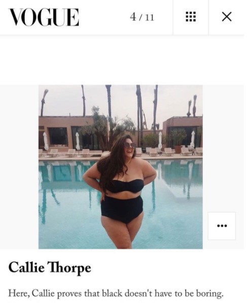 そんななか、英VOGUEが水着特集の記事にてカリーのインスタグラムの水着写真を掲載し、カリーは「ちょっとすごい、セレーナ・ゴメス、ケンダル・ジェンナーやベラ・ハディッドみたいなセレブと一緒にVOGUEに載っちゃった」と大喜び。
