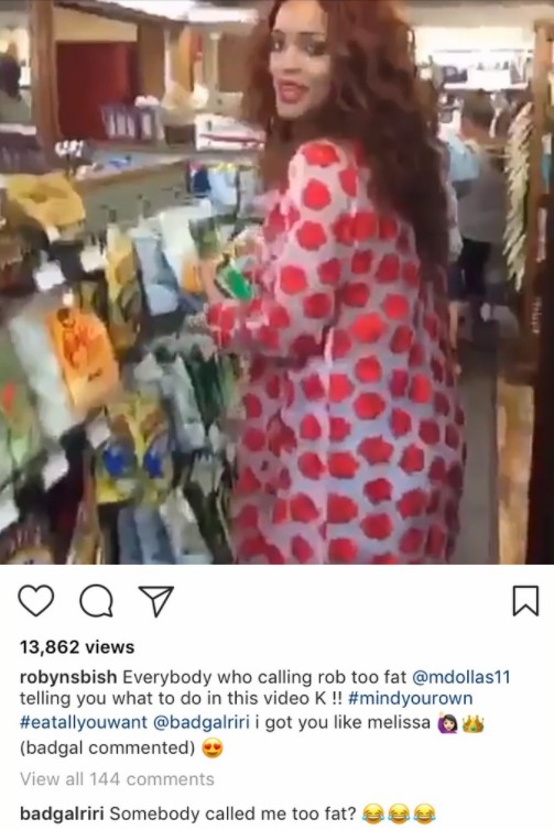 それに気付いたリアーナが「誰か私のこと太りすぎって言ってるの?(笑)」とコメント。
