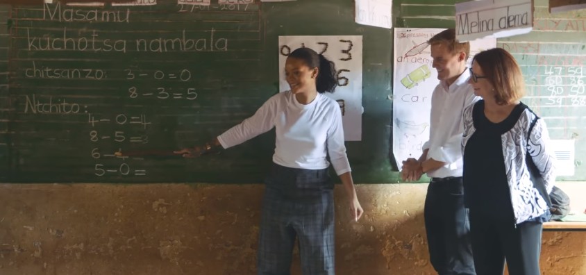 リアーナは今年マラウイを訪問しており、そこでは多くの生徒たちとの交流を楽しんだだけでなく、先生や政府の人たちとマラウイの教育制度について話し合った。