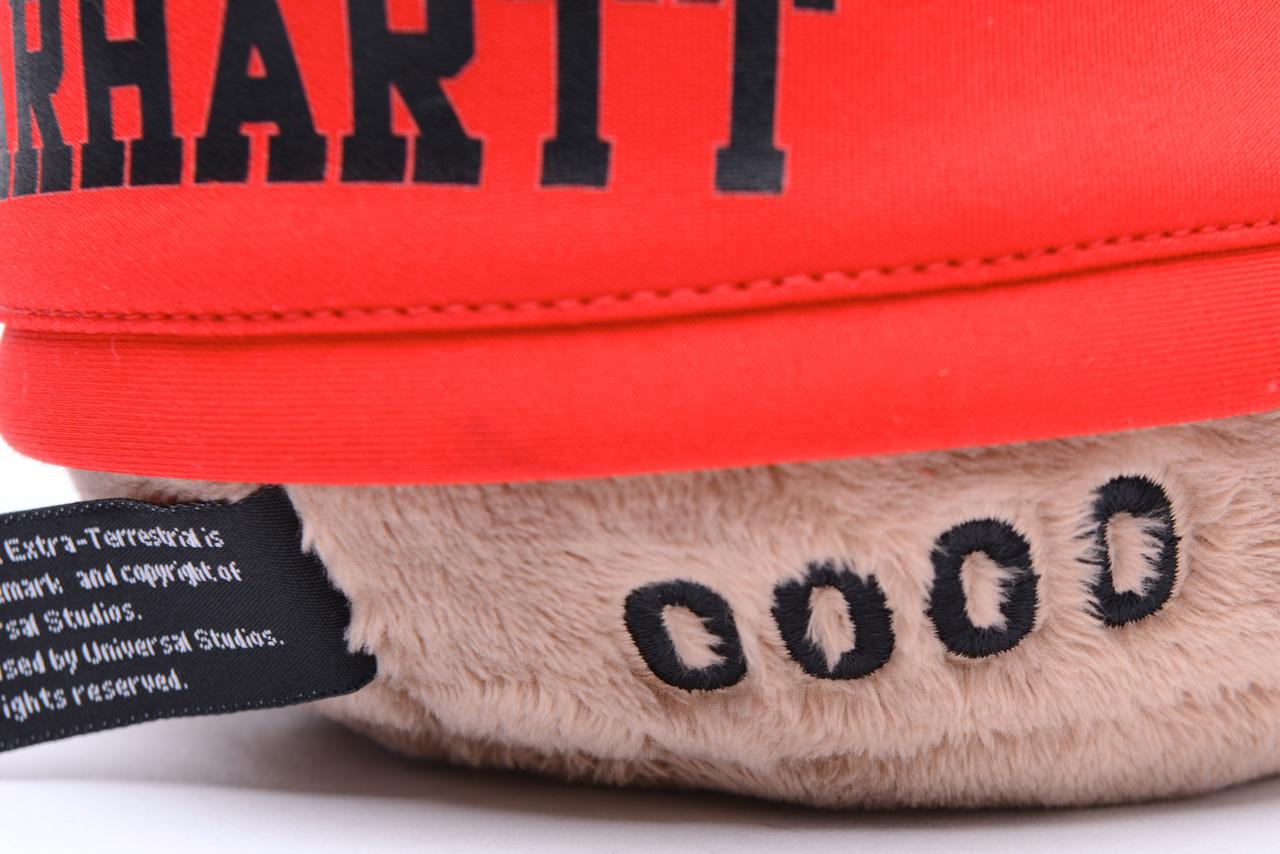 主人公のエリオットが着ていた赤いパーカーをE.T.が着用し、背中には【CARHARTT】のロゴ、そして左腕には【CIAOPANIC】のロゴがプリント。そして、限定数生産の証明であるシリアルナンバーが一点ずつに入る。