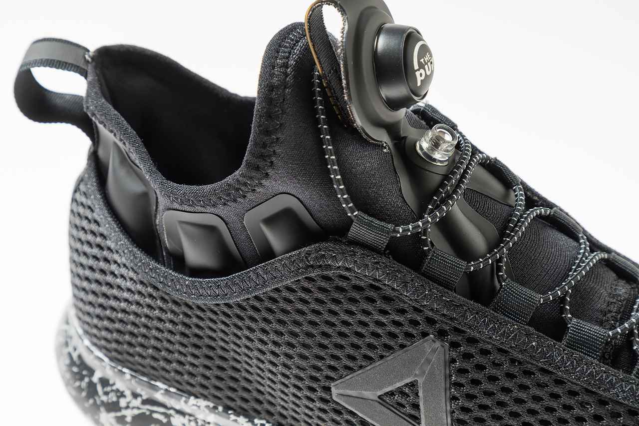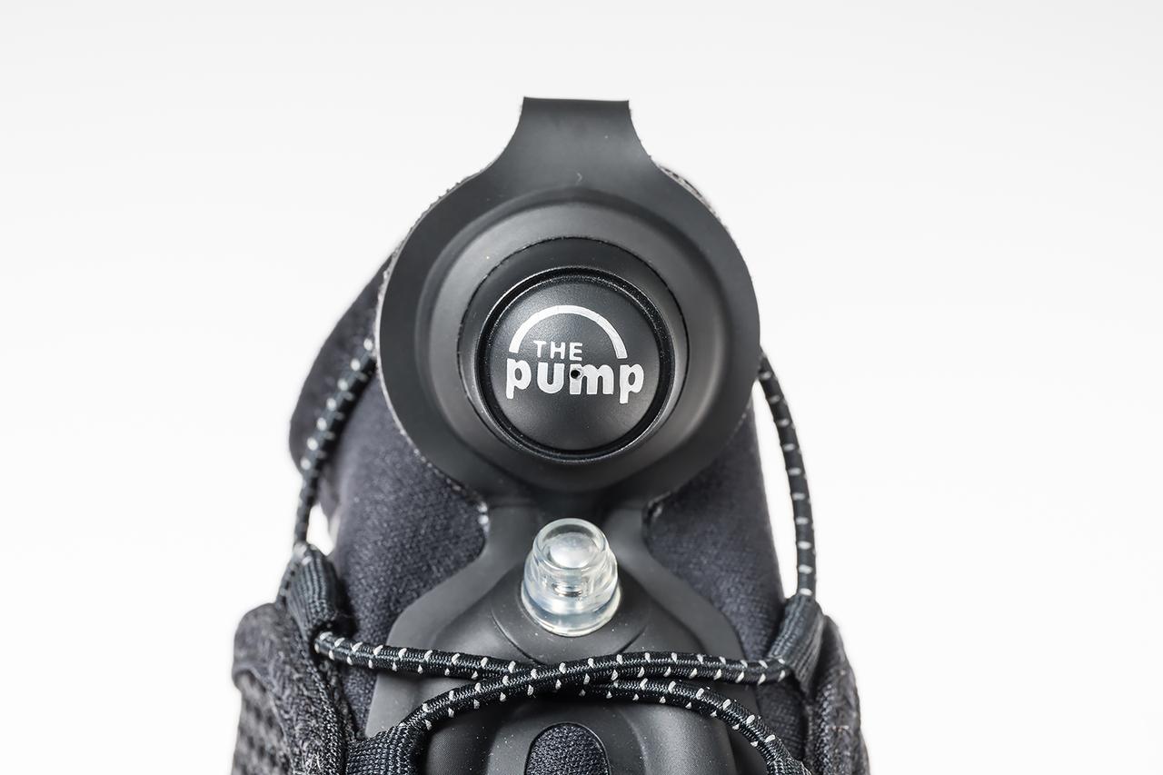 空気をエアチェンバーに注入することでアッパーのフィット感の調整ができる「Pumpテクノロジー」。これにより、個々の足に合ったカスタマイズされたフィッティングを実現。