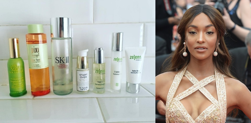 モデルのジョーダン・ダンも、ベハティと同じくフェイシャル トリートメント エッセンスを朝のスキンケアに使用。